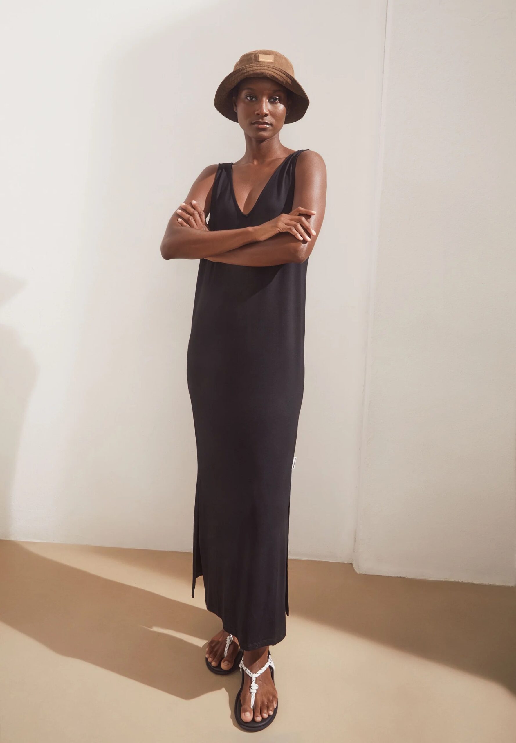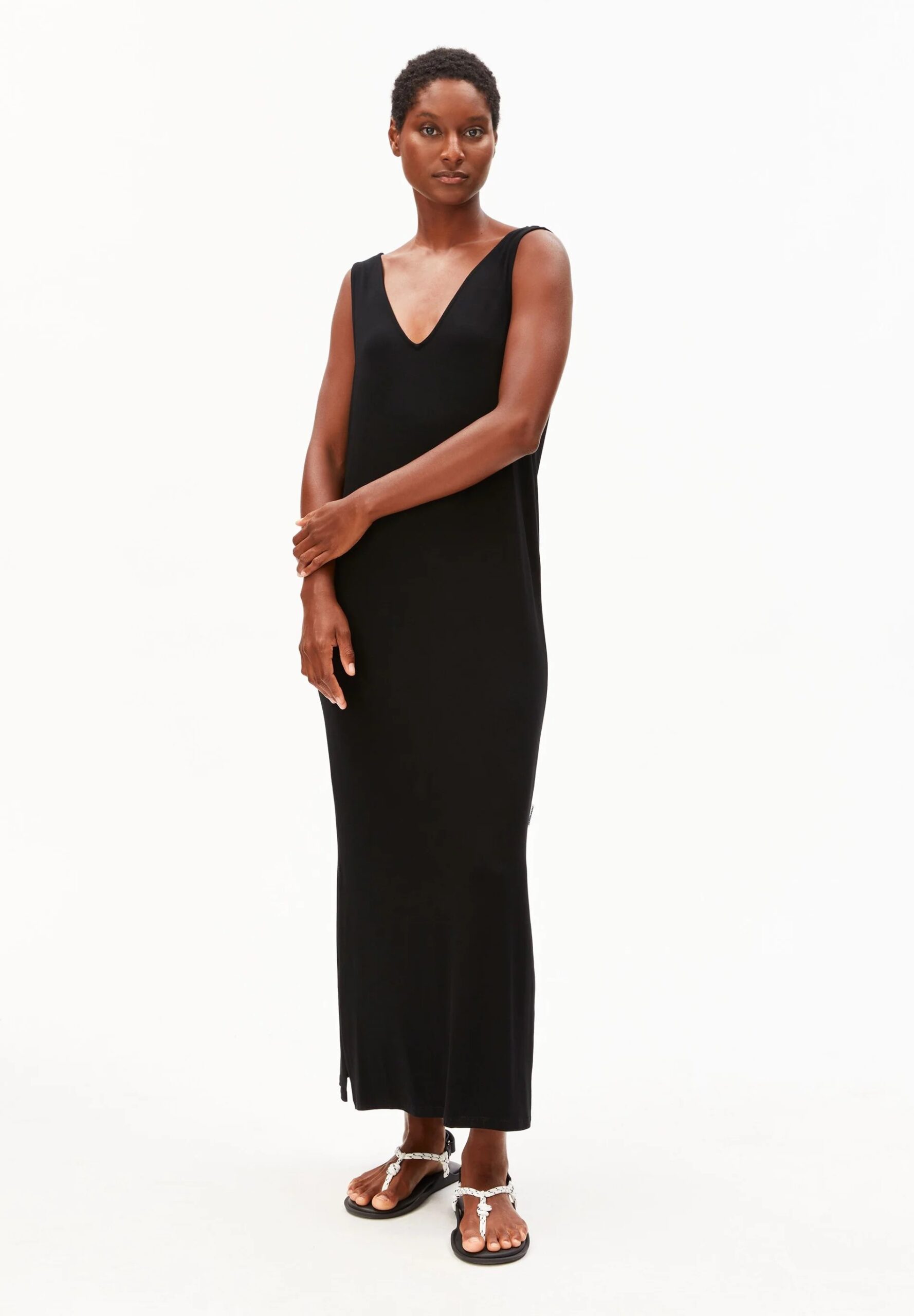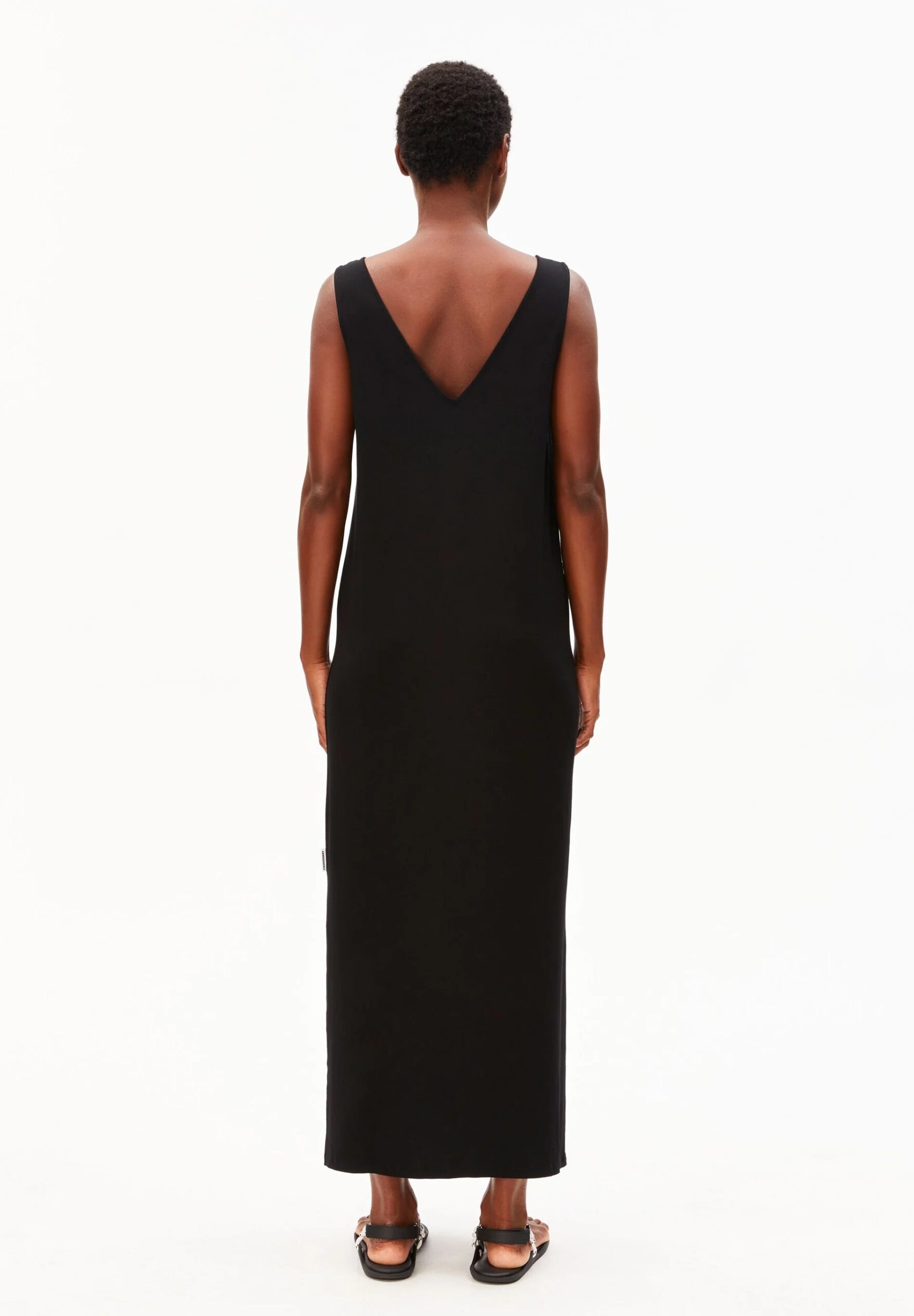 Dieses Kleid von Armedangels ist ein lässiges Allroundtalent. Überziehen und los geht der Sommeralltag. Das Kleid hat eine schmale Passform und Midi-Länge, besonders schön ist der V-Auschnitt vorne und am Rücken. Aus Lenzing Ecovero umschmeichelt dieses Kleid deine Haut ohne zu beschweren.