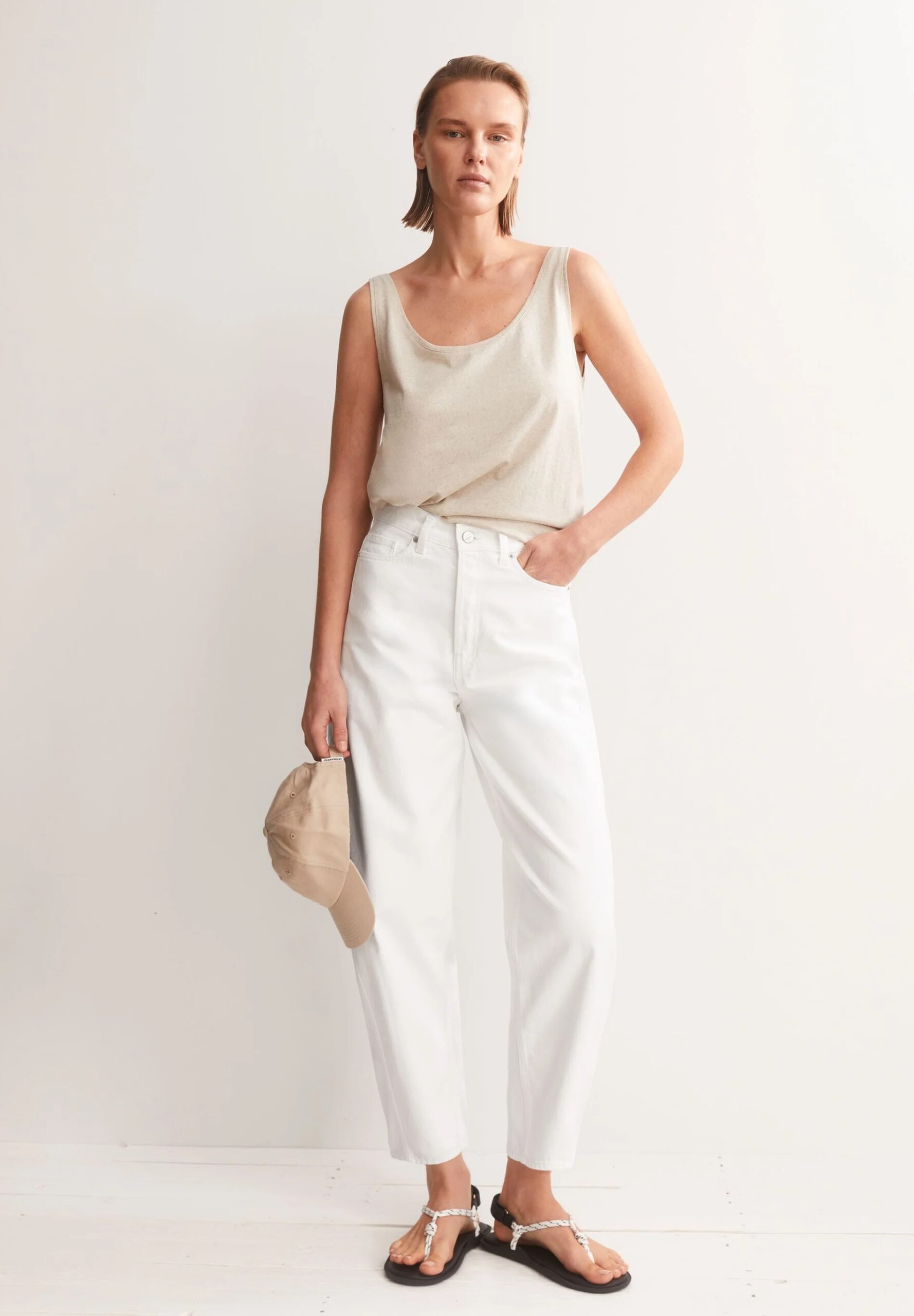 Das Leinen Mix Top von Armedangels hat eine lockere Passform und einen schönen Ausschnitt. Der hochwertige Materialmix bietet hohen Tragekomfort.