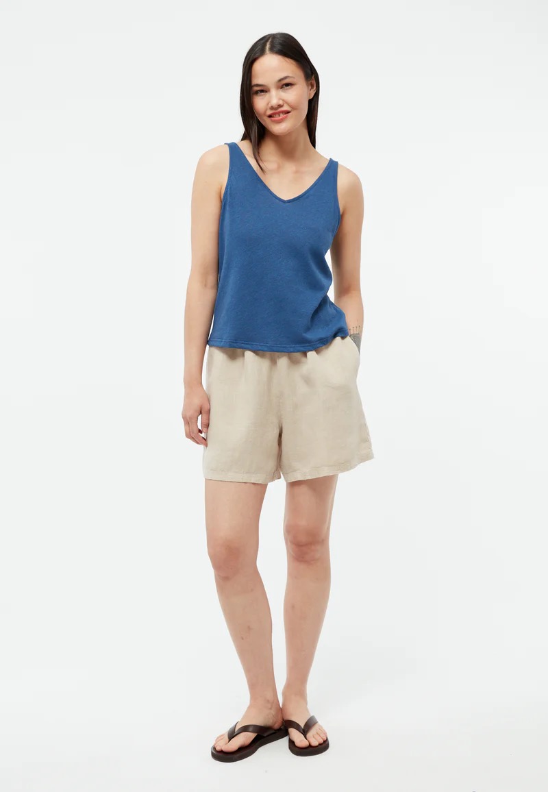 Das Linen Tank Top Jette von GIVN Berlin besticht durch die schöne Passform mit grosszügigem V-Rückenausschnitt und den hochwertigen Materialmix. Maisie liegt leicht und zart auf deiner Haut und ist ein super Sommer-Essential mit Lieblingsteilpotenzial.