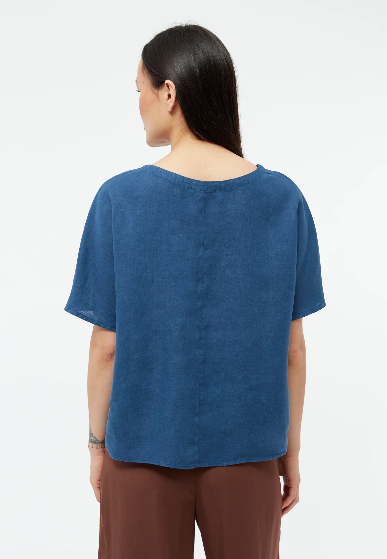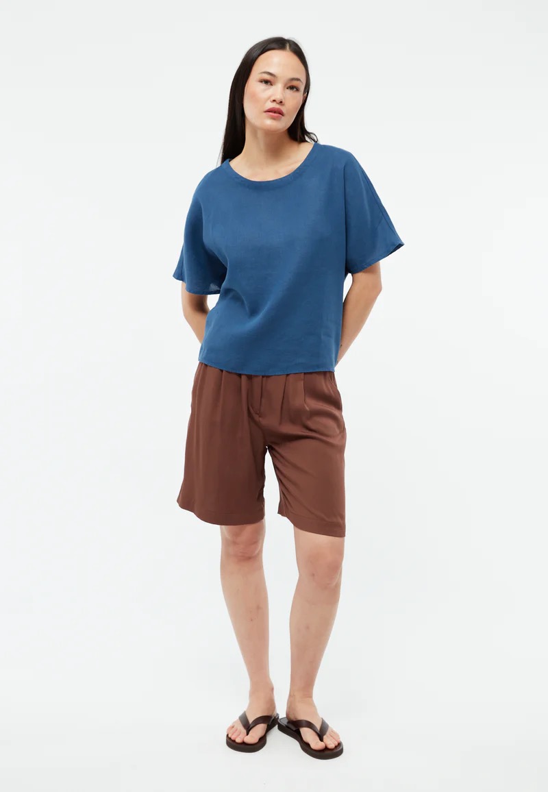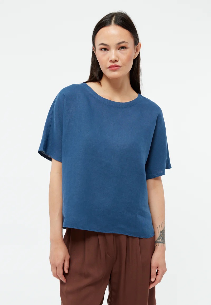 Das Shirt Pina von GIVN ist ein kurzärmeliges Leinentop mit weiterem Rundhalsausschnitt, das locker sitzt und die Oberarme bedeckt. Dieses Top ist perfekt für heiße Tage, wenn du zwar luftige Leichtigkeit möchtest, aber nicht viel Haut zeigen willst. Dadurch eigent es sich sowohl für entspannte Sommerabende sowie den Termin im Büro. Das Leinen ist zertifiziert und wird aus den Niederlanden, Belgien oder Frankreich bezogen.
