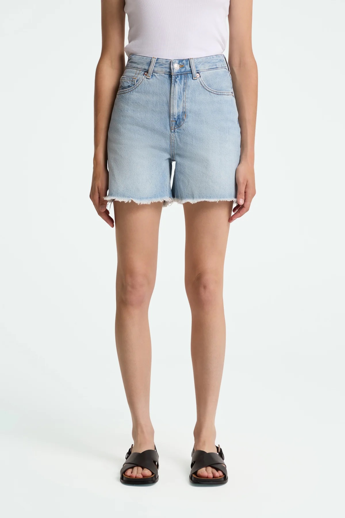 Liora Short von Kings of Indigo ist eine hochwertige Jeans-Short mit schmeichelhaft hoher Taille und leichtem A-Linienförmigen lockeren Bein. Ein stylischer, femininer und entspannter Fit. Nicht zu lang und nicht zu kurz ist es die Short für deinen Sommeralltag. Liora Short kommt ohne Stretchanteil aus fühlt sich dennoch weich an und ist atmungsaktiv. Liora Short hat recycelte Metallnieten und Knöpfe. Das Taschenfutter ist aus Bio-Baumwolle und recycelten Plastikflaschen. Veganer Markenpatch am Bund.