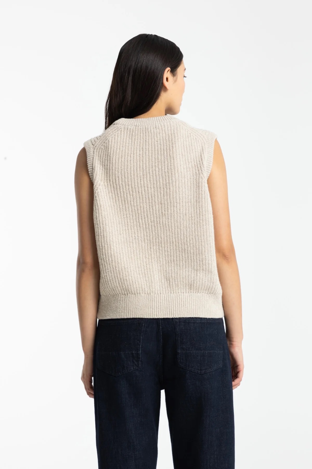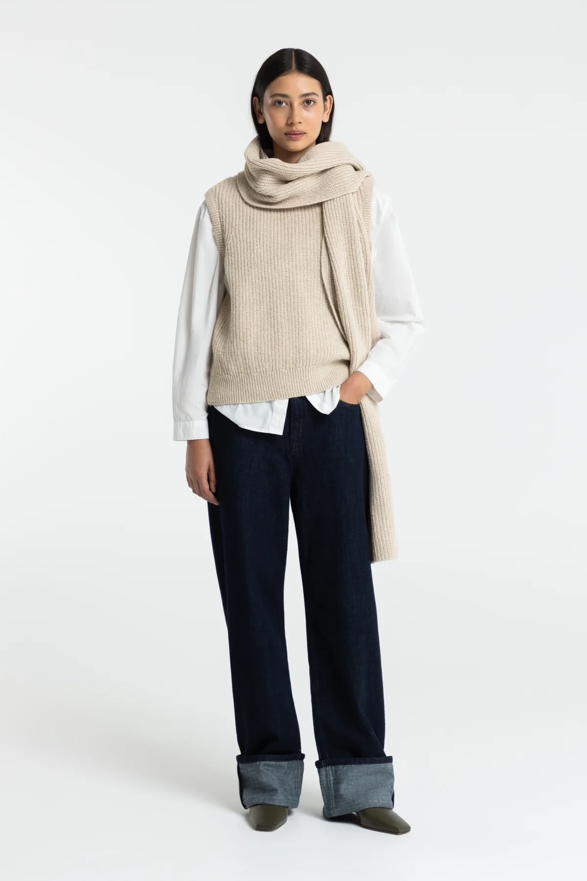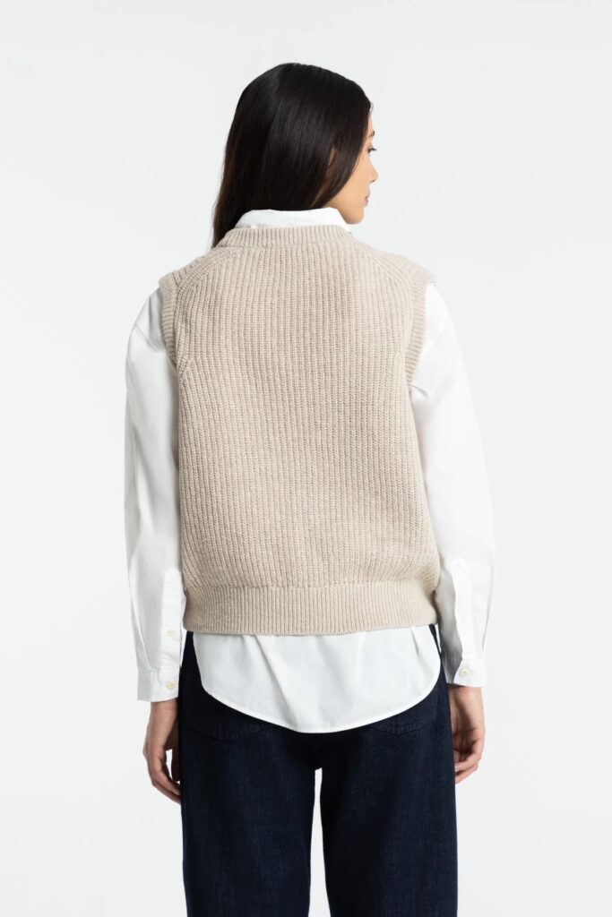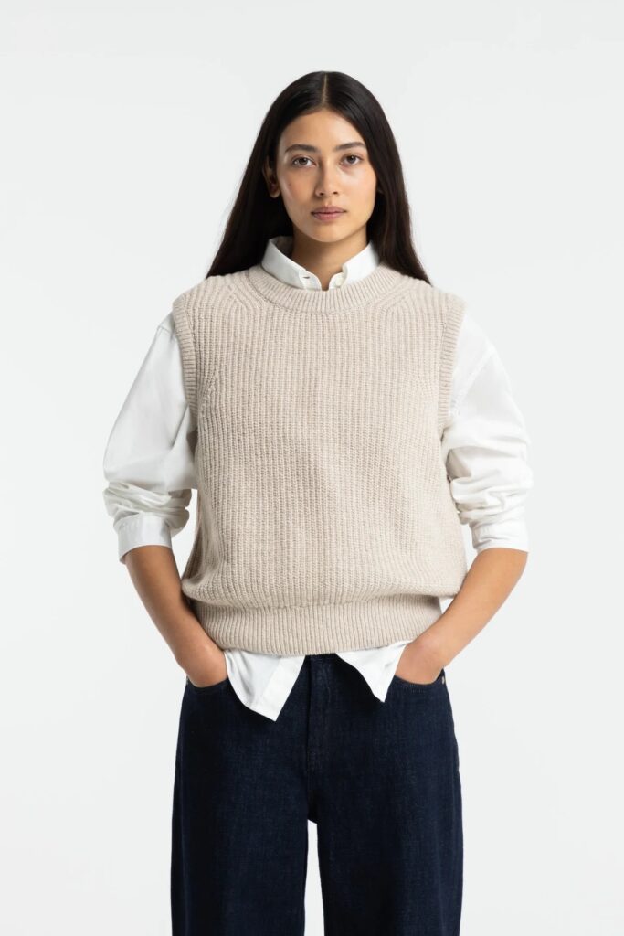 Nimya ist eine hochwertige Pullunder von Kings Of Indigo, der mit viel Bedacht aus verschiedenen Recycling-Materialien hergestellt wird. Nimya ist vielseitig kombinierbar und kann über ein Longsleeve, zu einem Hemd oder auch einfach so getragen werden.