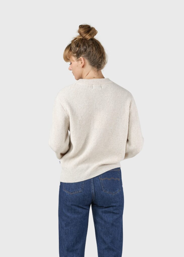 Gerda von Klitmøller ist ein wunderschöner Strickpullover aus hochwertiger Merinowolle mit toller Rippstruktur. Die weitere Passform und die weiten Ärmel mit eng anliegenden, gerippten Abschlüssen machen diesen Strick zu einem besonderen Basic, das sich chic sowie casual stylen lässt. Dieser sanfte Pastel Sand-Farbton lässt sich sehr gut kombinieren.