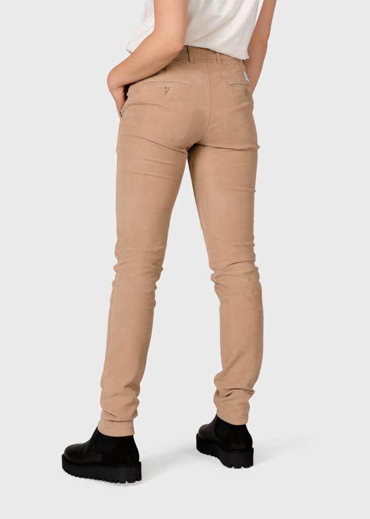 Liv ist eine eng anliegende Cordhose von Klitmøller. Die Beine sind schmal geschnitten und die Taille ist mittelhoch. Aus Bio-Baumwolle ist diese Hose fühlbar hochwertig und ein vielseitig kombinierbares Basic in deiner Garderobe.