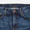 Gritty Jackson von Nudie Jeans hat eine normale Passform und gerade geschnittenes Beine mit normalem Beinabschluss. Für alle, die eine nicht zu eng anliegende Jeans bevorzugen. Bemerkenswert ist die etwas dunkler ausfallende Waschung, die ein Spektrum an Indigo-Tönen – von Tiefdunkel bis hin zu gedeckten hellblauen Akzenten aufweist und so eine tolle Denimstruktur erzeugt.