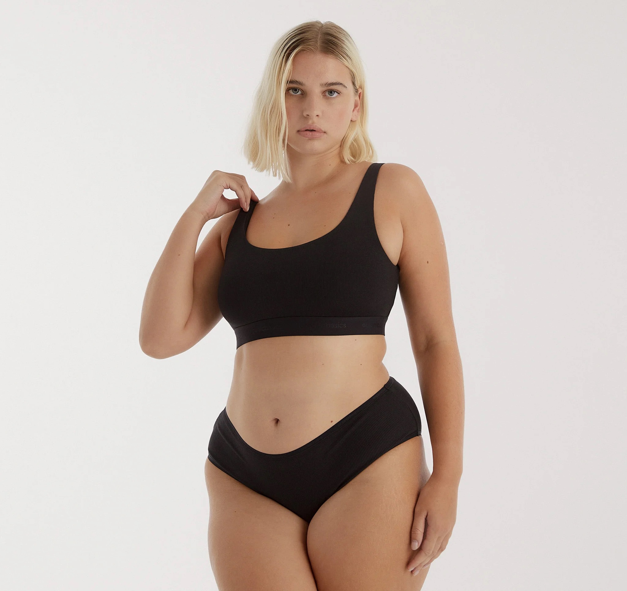 Die Core Rib High von Organic Basics ist ultra schmeichelhaft. Sie besteht zum Grossteil aus Bio-Baumwolle, durch die feine Rippstruktur liegt sie extra weich und sanft auf deiner Haut. Im Bein ist sie mittel-bis hochgeschnitten ein elastischer Bund mit dezentem tonal gehaltenem Bündchen rundet das Design ab.