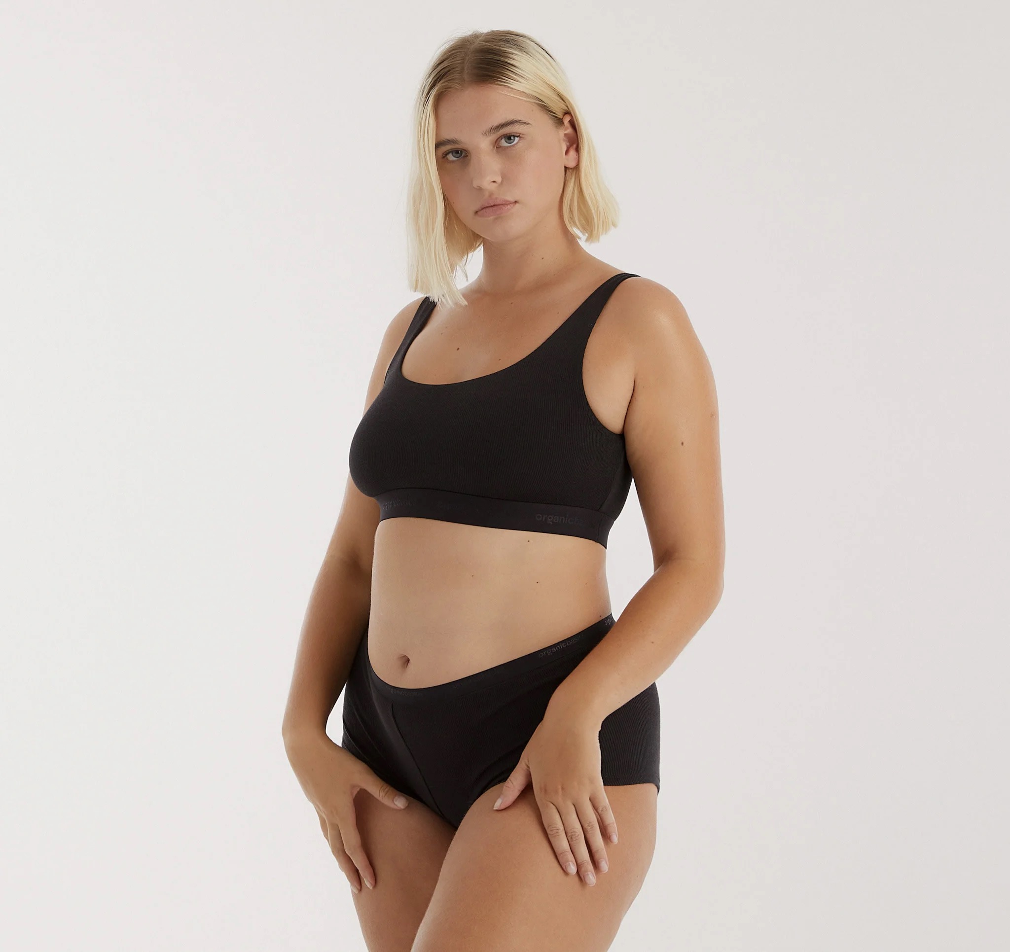 Die Core Rib Shorty von Organic Basics schmiegt sich angenehm weich an deine Haut. Sie besteht zum Grossteil aus Bio-Baumwolle, durch die feine Rippstruktur liegt sie extra sanft auf deiner Haut. Die Shorty ist halb hoch geschnitten, ein elastischer Bund mit dezentem tonal gehaltenem Bündchen rundet das Design ab.